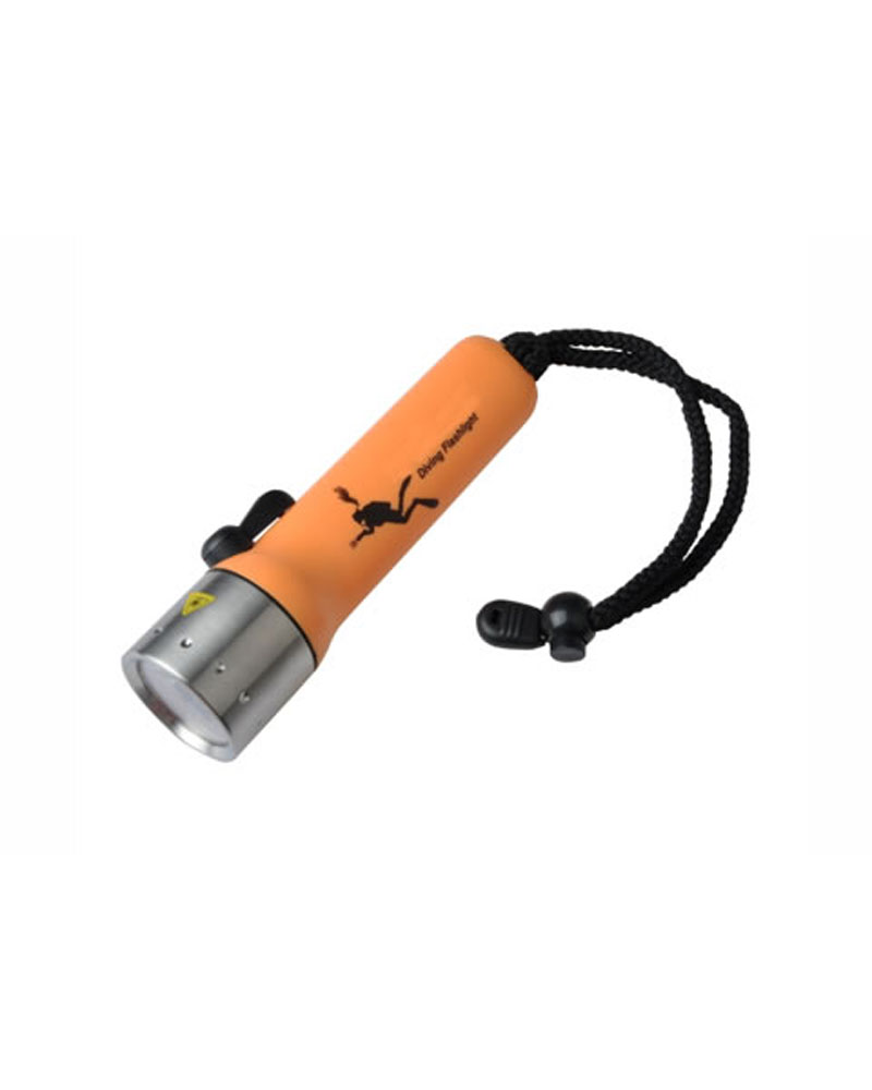 It works under water 50-100m. Powered by 4 x AA batteries.