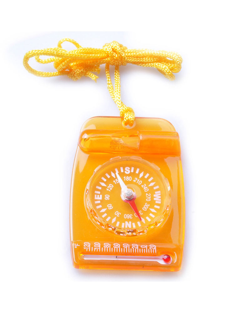 A handy compass with easy to read markings, a thermometer and whistle all in one.
