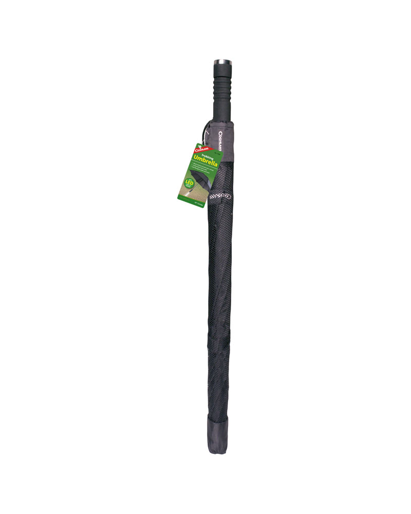 Coghlans Trekking Umbrella is a lightweight, rugged design with a full set of features including a vented canopy and a bright LED light in the handle.